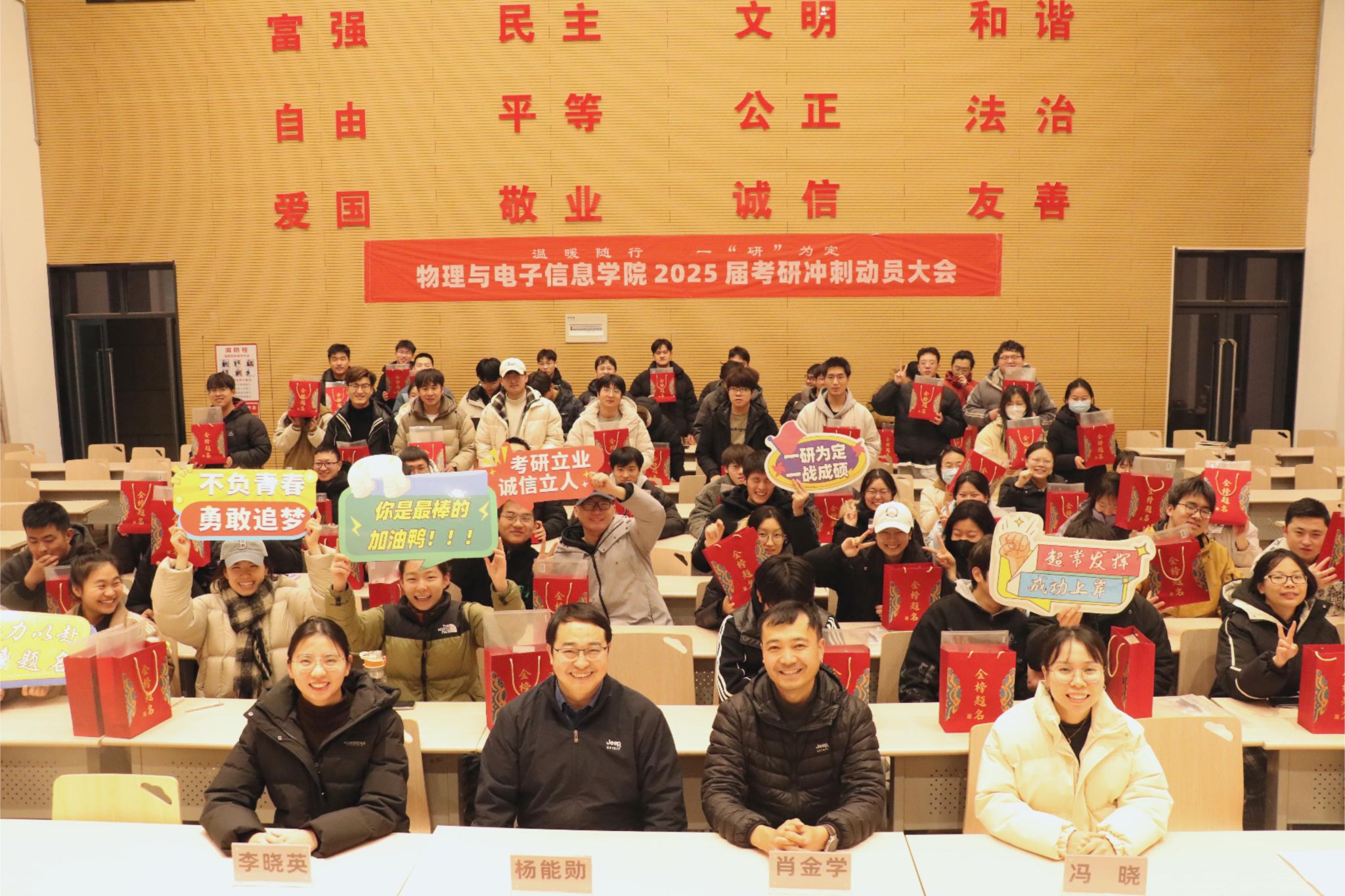 在2025年全国硕士研究生招生考试即将到来之际,为坚定考研员工的信心,缓解备考压力,激发前进动力,12月18日下午,365英国上市集团于建工报告厅召开2025年考研冲刺动员大会。公司党委副书记肖金学、副经理杨能勋、毕业班辅导员及全体考研学子参加大会。大会由辅导员冯晓主持。