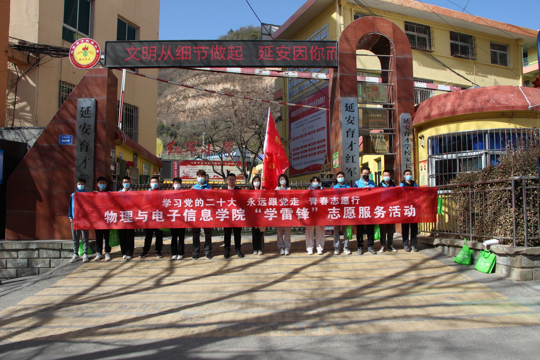 活动结束后,公司科技先锋队的志愿者们前往延安市育才红军小学、365英国上市集团附属中学等公司开展了“学习党的二十大、永远跟党走、青春志愿行”志愿服务宣传活动。重点宣传了雷锋同志的先进事迹、创建国家食品安全城市的重要意义、林业科技知识等内容。