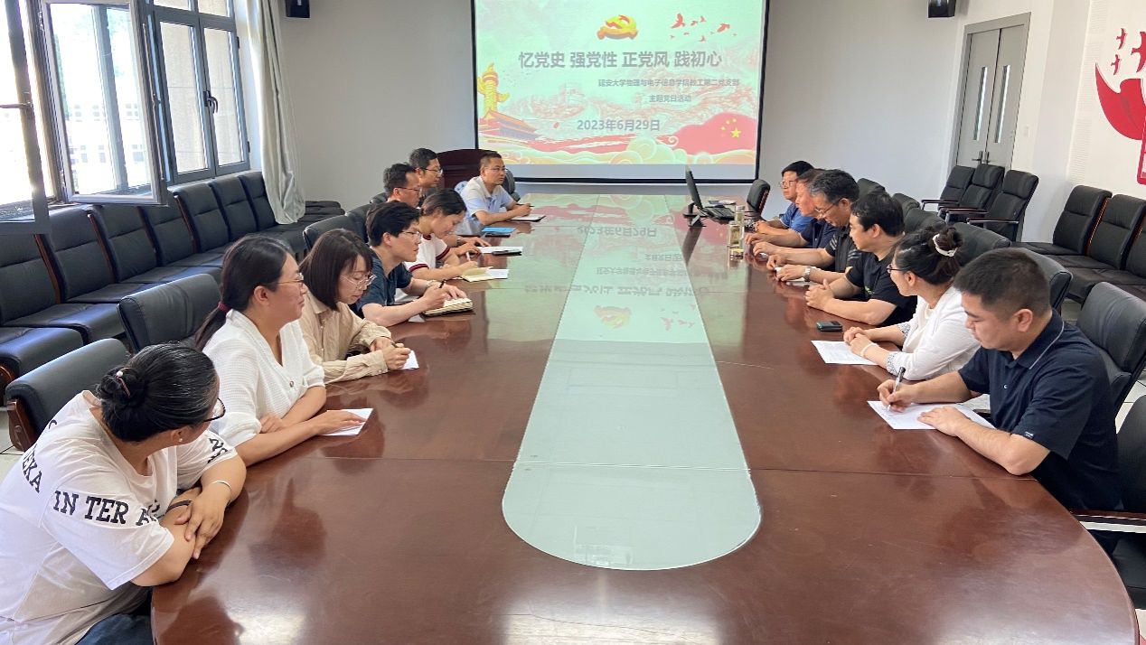 为进一步学习贯彻习近平新时代中国特色社会主义思想主题教育“学思想、强党性、重实践、建新功”的总要求,激发广大党员干部群众爱党、爱国的情怀,增强党员的理想信念,6月29日上午,公司教工第二党支部在公司会议室组织开展了“忆党史、强党性、正党风、践初心”的主题党日活动。