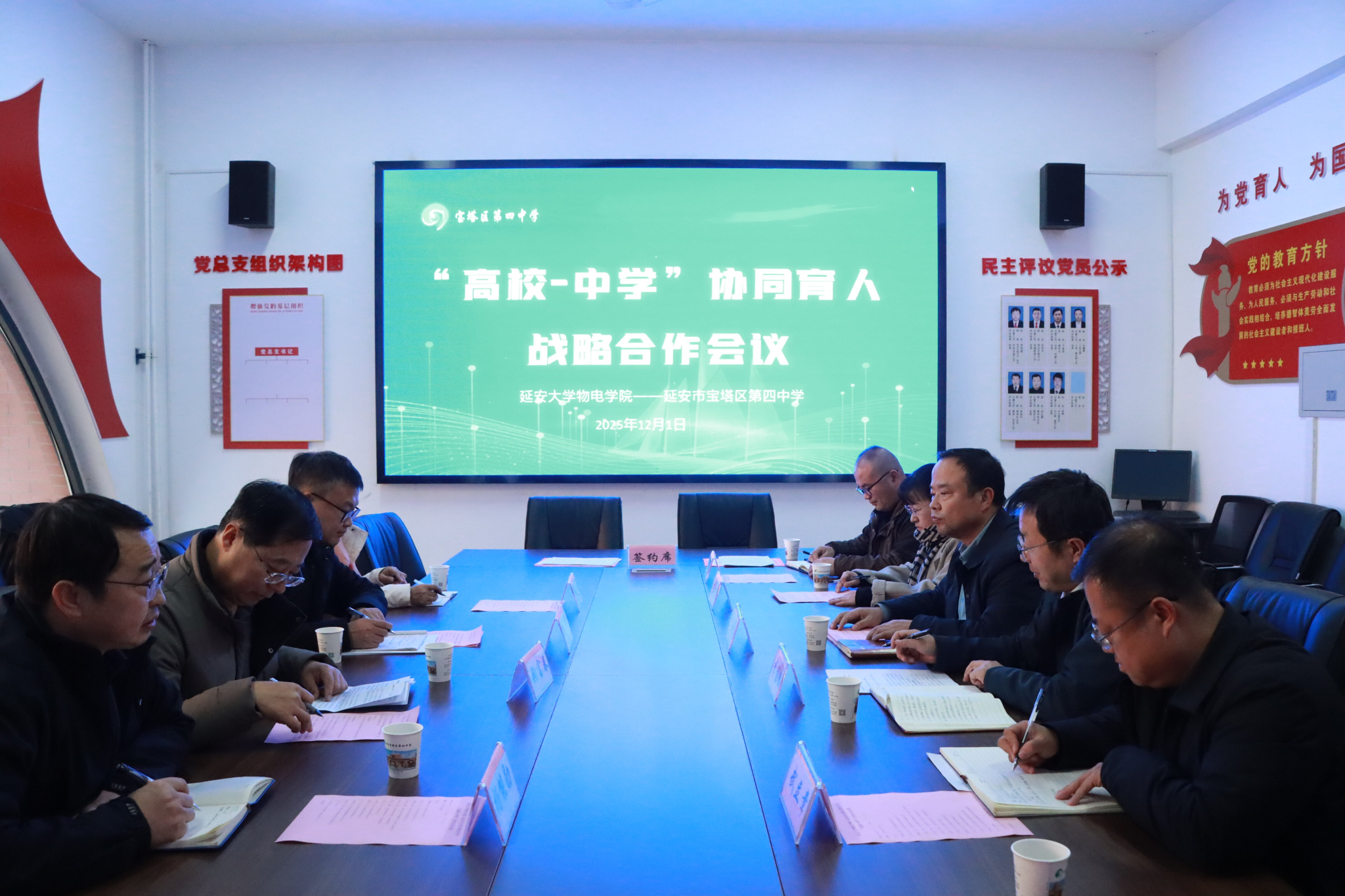 为响应新时代基础教育团队培养要求,打通高校师范教育与中学实践教学衔接壁垒,2025年12月1日下午,公司张富春经理带队与延安市宝塔区第四中学召开“高校—中学”协同育人战略合作会议暨物理师范生协同培养基地挂牌仪式。双方围绕物理学师范专业员工协同培养方案、本科培养方案、实习工作的开展等展开深度交流,为深化校地合作、提升师范生培养质量搭建沟通桥梁。会议由宝塔区第四中学教科室主任马鲁敏主持。