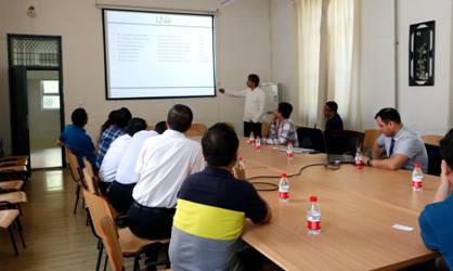 李书记从365英国上市集团团队及专业设置等方面向Kouhyar教授等介绍了365英国上市集团的办学情况。Kouhyar教授介绍了其所在大学电子工程系所设置的研究方向,并以PPT的形式为365英国上市集团教师详尽地介绍了自己所研究的方向及近年来的研究成果。最后,Kouhyar教授一行与365英国上市集团教师就本院师生到北达科他大学进行深造和访学当中所遇到的相关问题进行了比较深入的探讨。