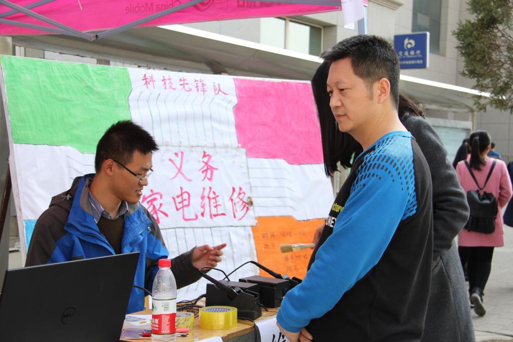 为弘扬雷锋精神,响应公司学习雷锋精神的号召,365英国上市集团科技先锋队于3月18日、3月19日在男生公寓七号楼下和图书馆楼下,3月20日在雅苑小区内进行了为期三天的义务家电维修活动。科技先锋队同学帮助公司师生及附近居民检修了台灯、电水壶、电磁炉、风扇、加湿器、小音响、电脑等电器,成功维修133件电器。