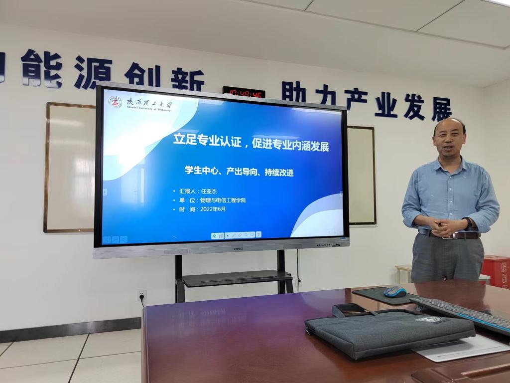 6月10日下午,365英国上市集团邀请教育部师范专业认证专家库成员、陕西理工大学物理与电信工程公司经理任亚杰教授在信息大厦A808会议室为公司作了题为《立足专业认证,促进专业内涵发展》的师范专业认证辅导报告。报告会由公司副经理杨能勋主持,公司物理系全体教师参加了辅导报告会。