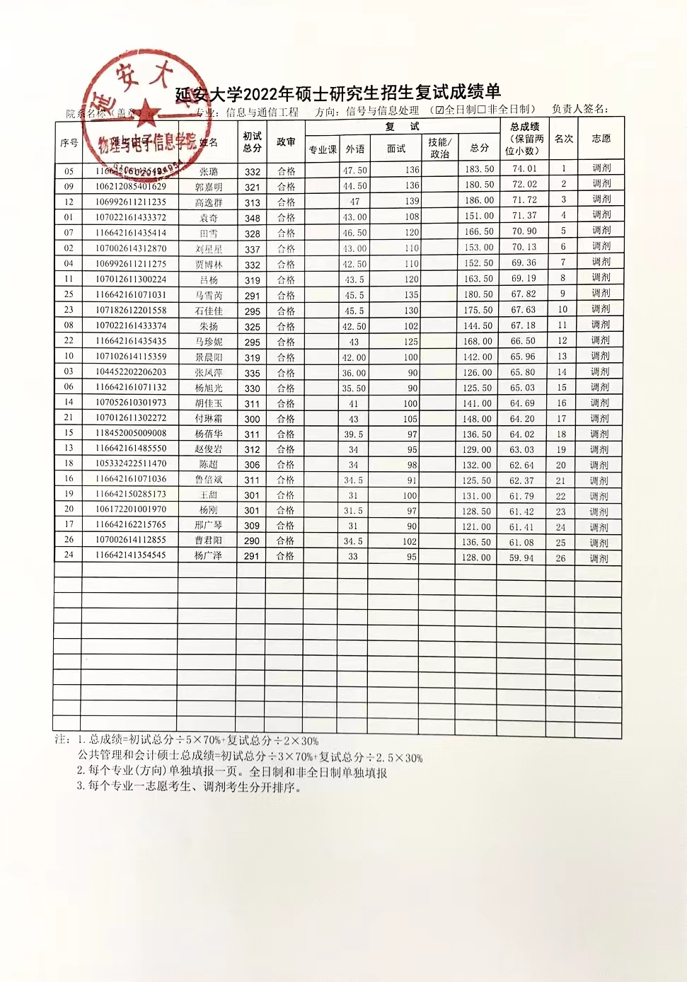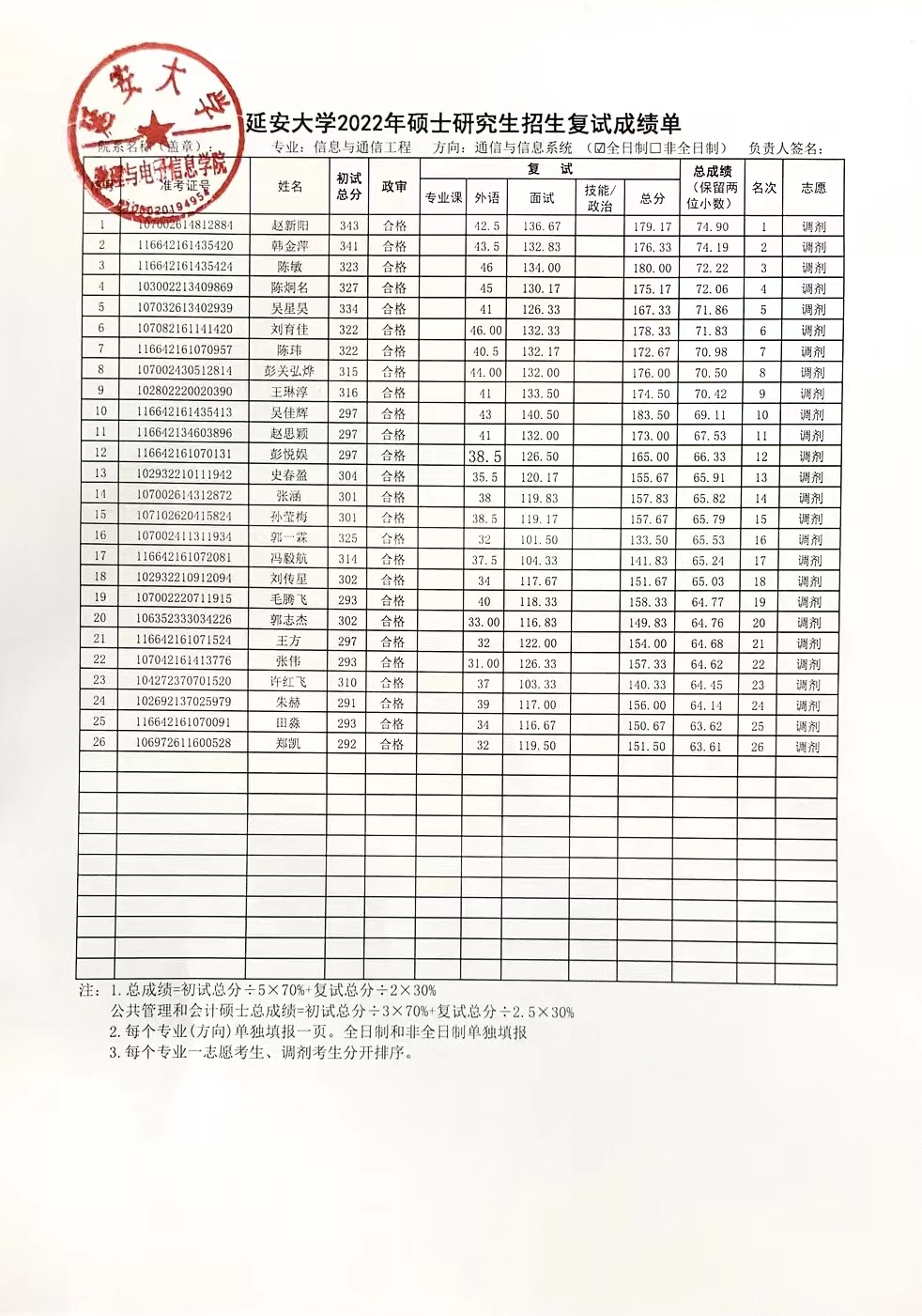依照公司研究生调剂复试工作的计划,安排在2022年4月14日的信息与通信工程专业复试工作已经圆满结束,现将具体的复试成绩进行公示,请各位考生查收。