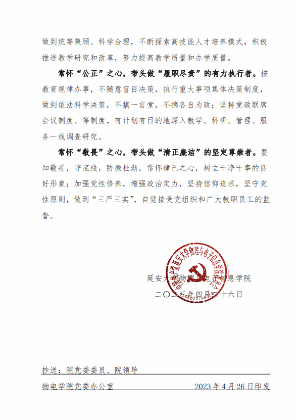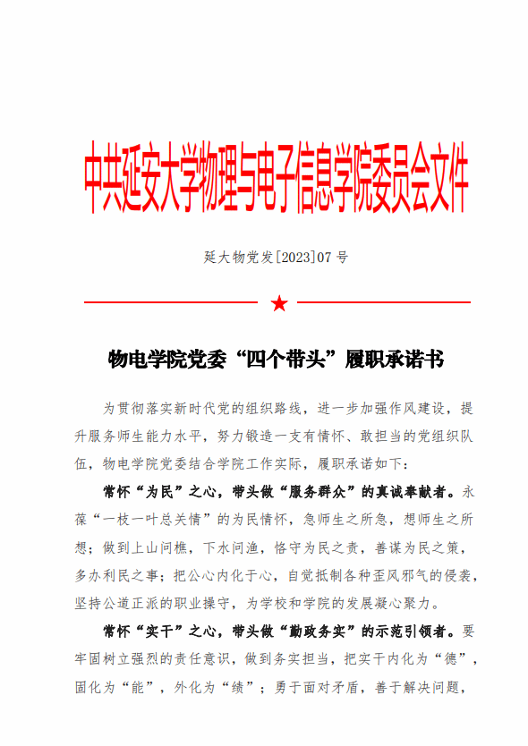 公司党委“四个带头”履职承诺书
