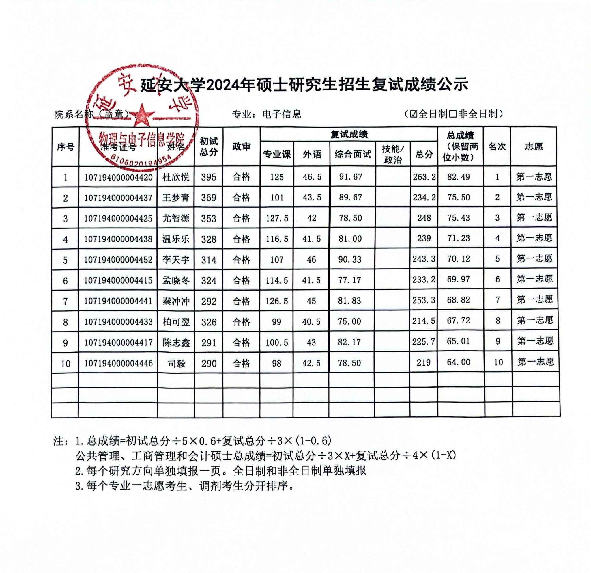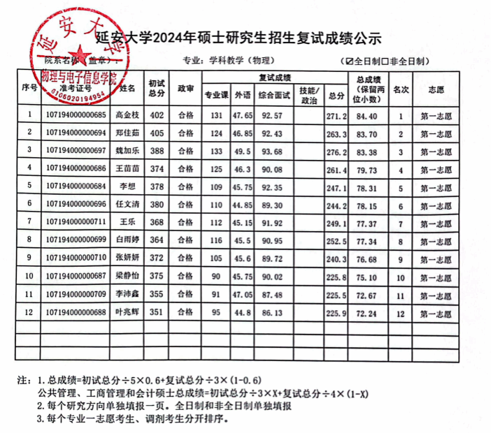 依照公司2024年硕士研究生复试工作实施方案,安排在2024年3月29日至3月31日的一志愿考生复试工作已经圆满结束,现将具体的复试成绩进行公示,公示时间为十个工作日。