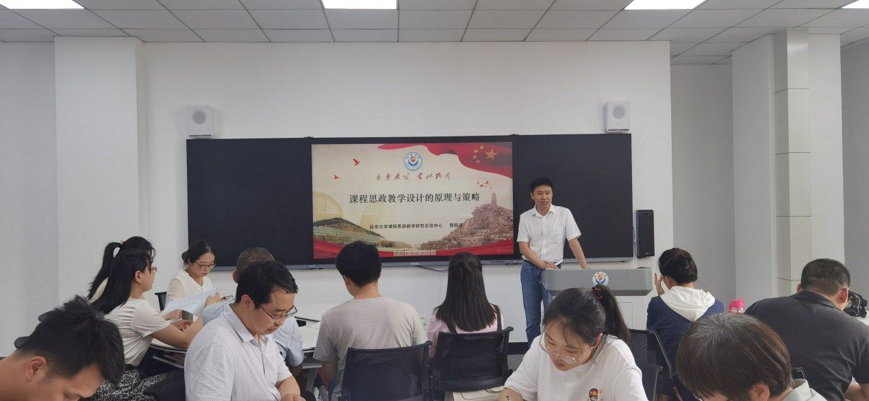 本次培训会共分为四个环节,课程思政教学设计的原理与策略介绍、课程思政的案例分析、小组讨论和课程思政作品的设计与展示。在第一环节中,教科院副教授曹殿波首先从课程思政学习的过程与条件、课程思政教学设计的要素与流程、“233”教学设计模型、课程思政教学工作坊环节等四个方面进行了分享。在第二环节中,文公司副教授郭小良以陕西省思政科大练兵一等奖课程为例,着重展示了真实课堂教学中课程思政的设计思路与实施过程。第三个环节中,在两位培训导师的指引下,参训教师分成六个小组进行了课程思政设计的实操演练。最后,各组教师展示了自己的设计作品。培训结束后,李晓峰、曹殿波、郭小良给参训教师颁发了结业证书。